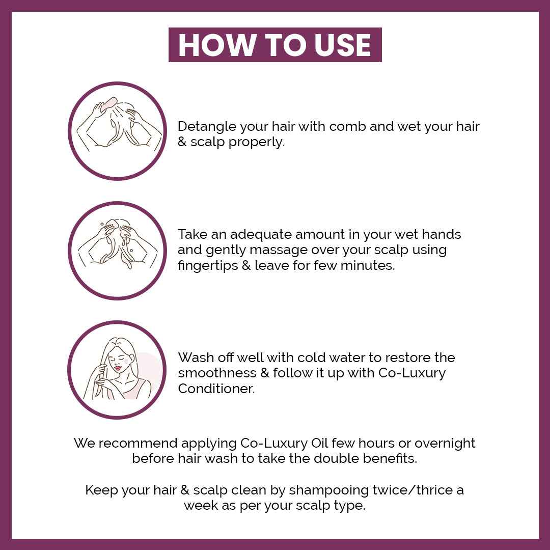 Step 3: Wash off well with cold water to restore the smoothness & follow it up with Co-Luxury Conditioner.
